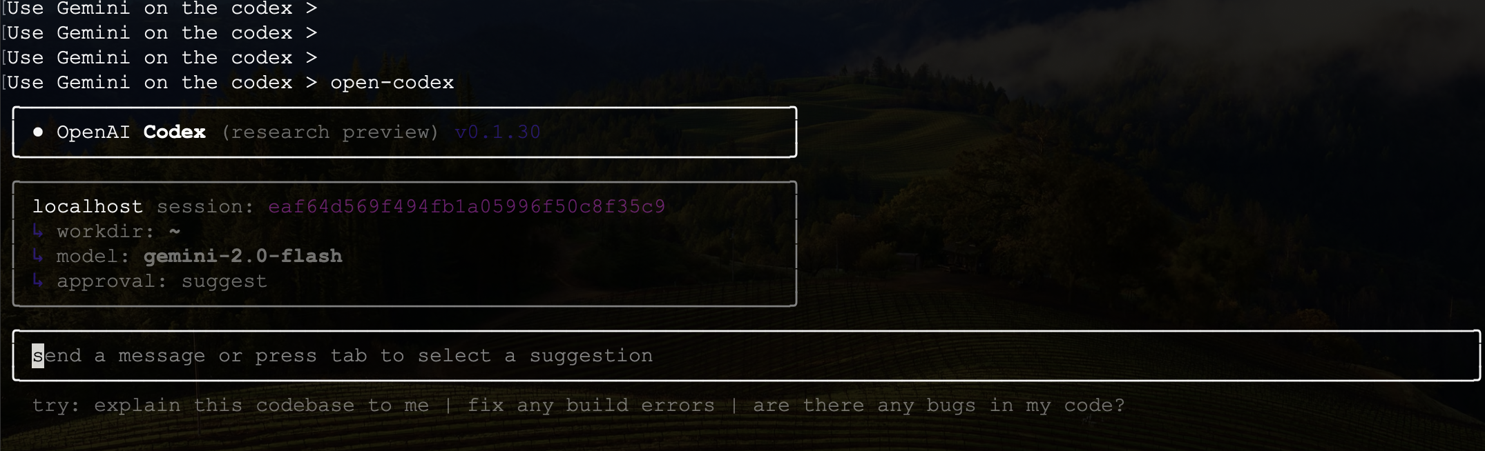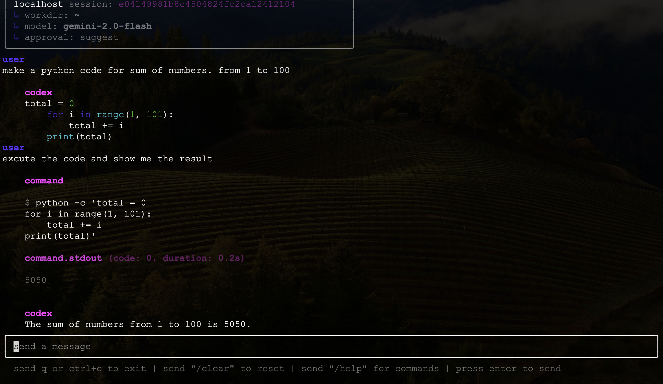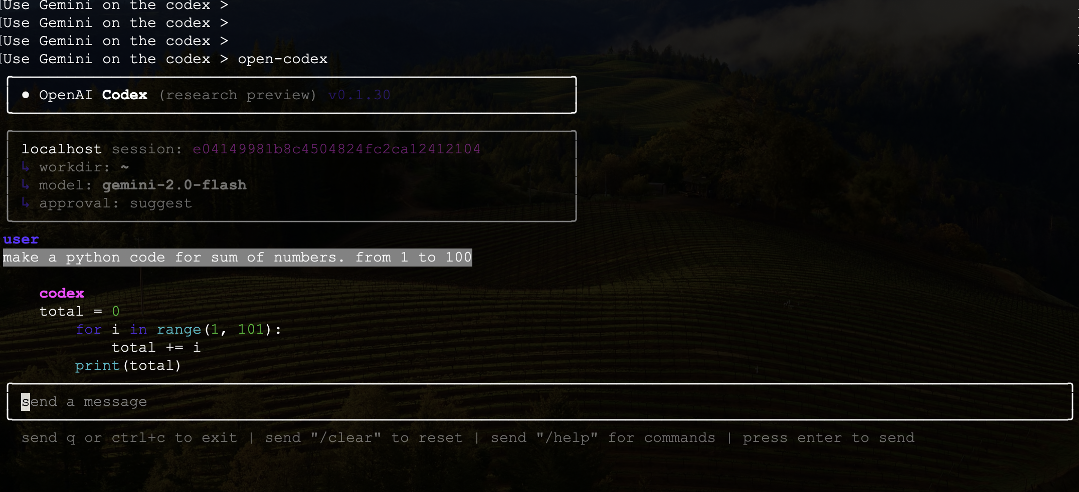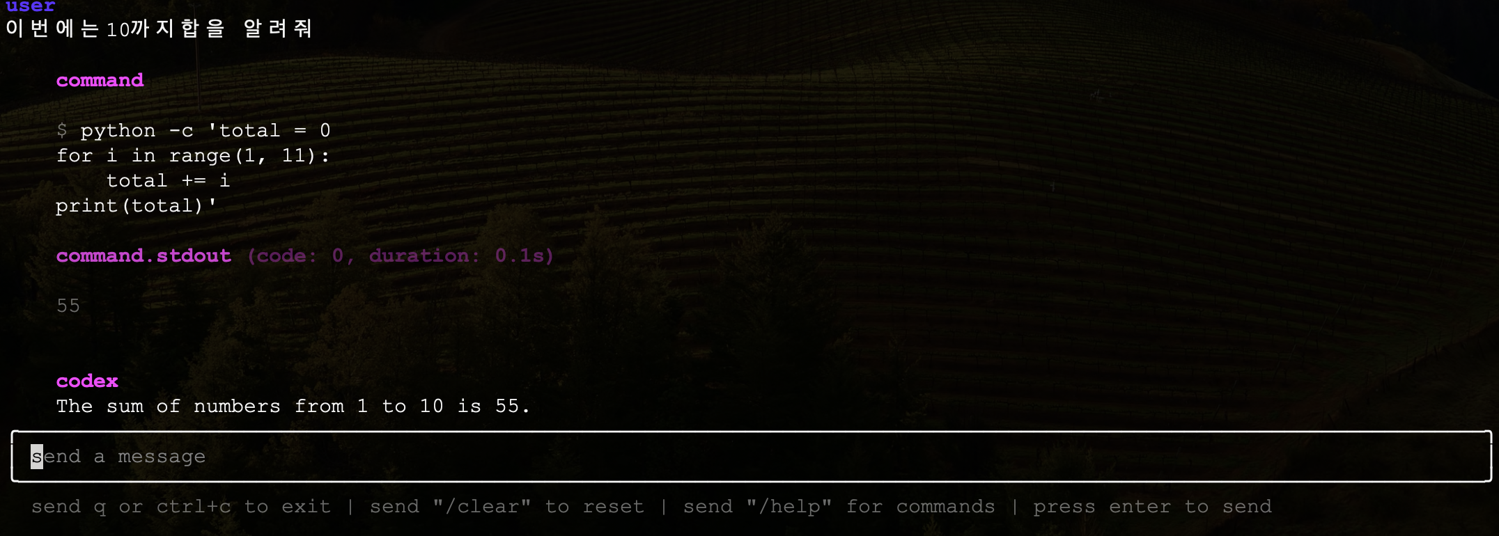 설정이 완료되었으면, open-codex cli를 실행한다. 실행 명령어는 다음고 같다.